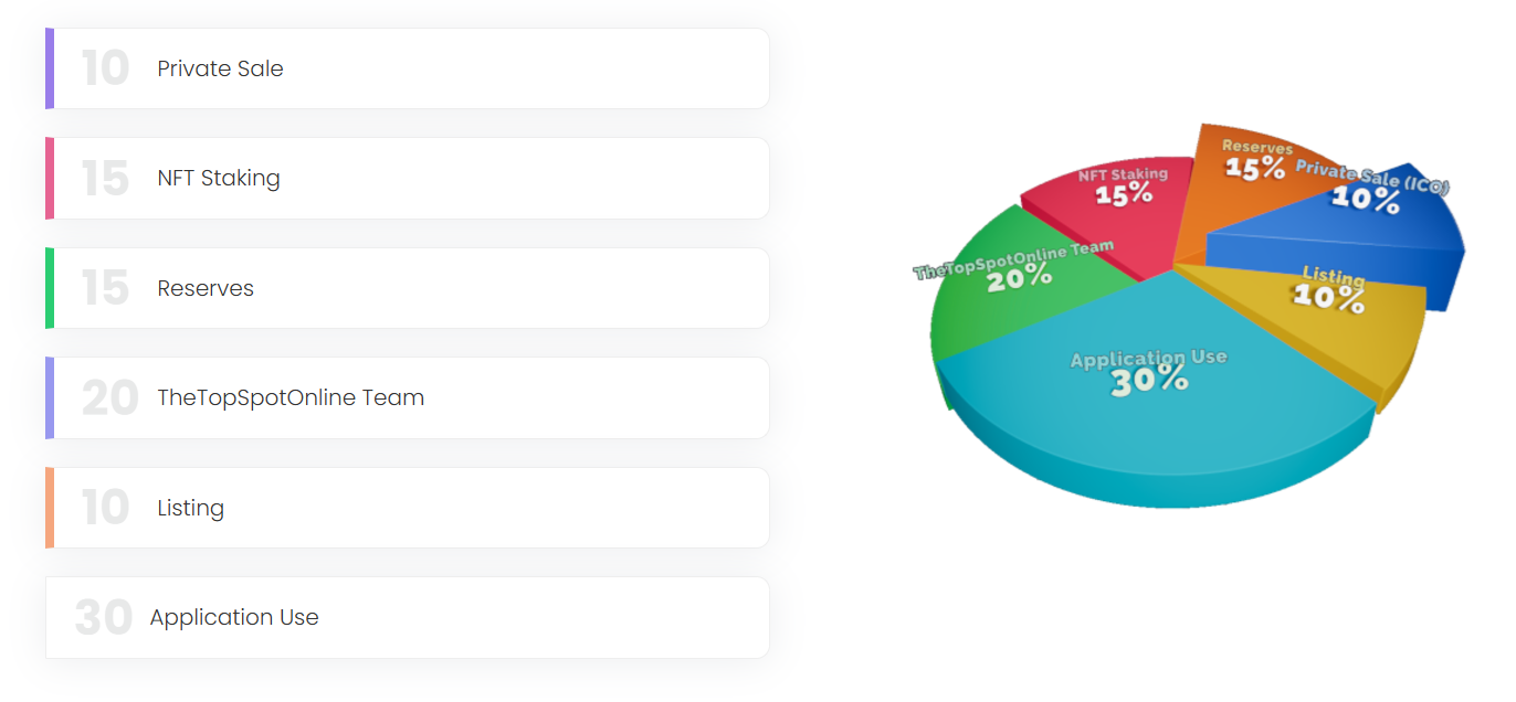 All transactions on TheTopSpotOnline, such as NFT purchases and trades, are processed in SPOTT Tokens, creating demand for the token.